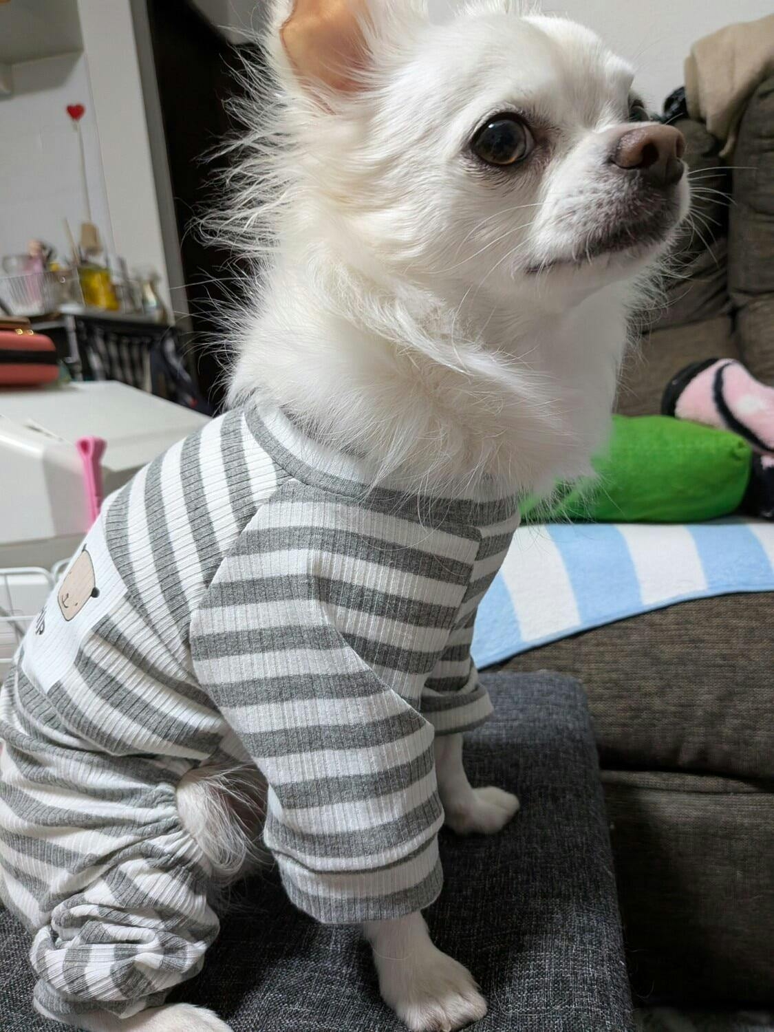 ペット用 ボーダー ロンパース つなぎ
